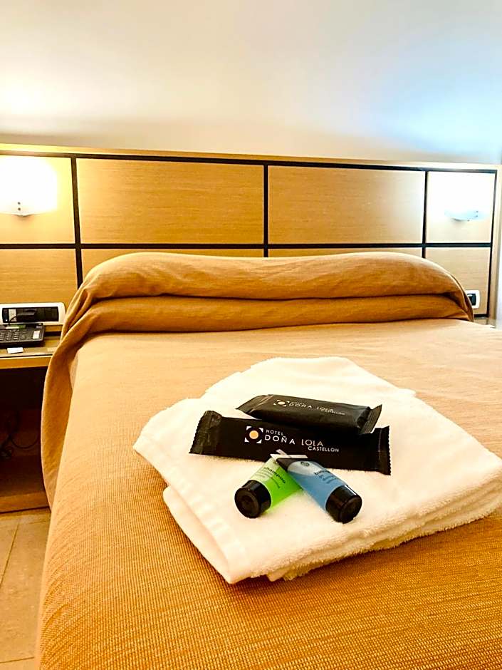 The types of rooms available at Hotel Doña Lola include Economy Standard Double or Twin Rooms, Family Rooms, Superior Double or Twin Rooms with Views, Premium Double Rooms with Views, and Executive Double or Twin Rooms with Views. All rooms are non-smoking. The Economy Standard Double or Twin Rooms have either a double bed or twin beds, while the Family Rooms have four twin beds. The Superior Double or Twin Rooms with Views and the Executive Double or Twin Rooms with Views have either two twin beds or one double bed. The Premium Double Rooms with Views have one double bed.