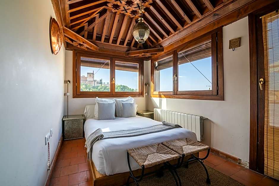 This double room features air conditioning, view and seating area. A privileged view of the Alhambra from the room and its private terrace.