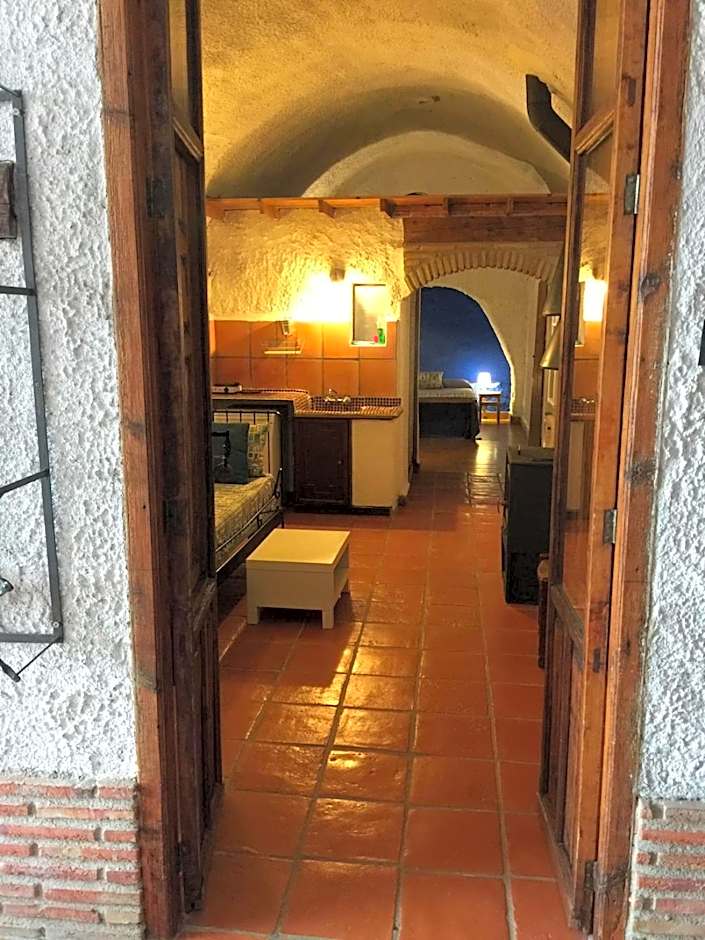 This cave apartment has a double bedroom with a fireplace, a living room, a kitchen and a bathroom with a hydromassage bath. It features a small outdoor area with a barbecue.