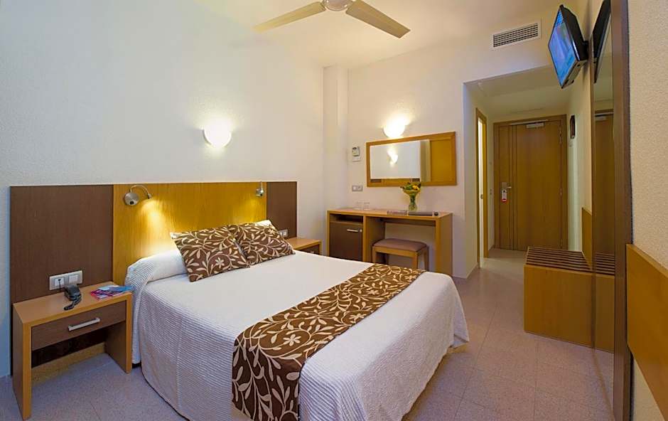 The hotel features an array of amenities designed for relaxation and adventure alike. Sip a refreshing cocktail at the bar after a day of beach lounging, or indulge in culinary delights at the on-site restaurant. If your sun-soaked escapades leave you needing a moment to recharge, claim a spot on the sun deck and bask in the beauty of Ibiza. And for your convenience, private parking is available for free, along with other perks such as free Wi-Fi and air conditioning to keep you cool during those warm summer nights.
