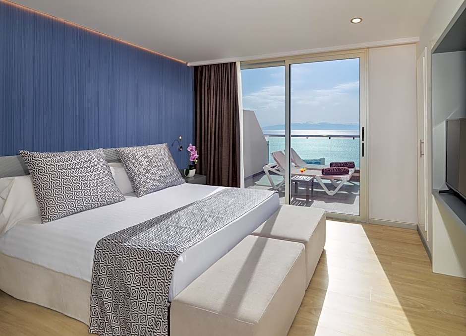 This air-conditioned apartment features stunning views of the sea. It includes a 1 king size bed and a sofa bed for 2 people in the living room. The kitchen is fitted with a hob, oven, microwave, dishwasher and fridge. Free WiFi is available. Bathrobes and slippers are provided.