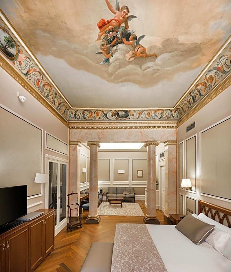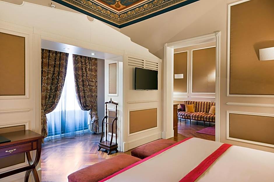 This elegant, air-conditioned suite features 18th century style decor with columns and paintings. It offers a plasma cable TV, pillow menu, a mini-bar and free safe and WiFi. The private marble bathroom includes a hairdryer and slippers. There is also a Nespresso® coffee maker and a complimentary water bottle.