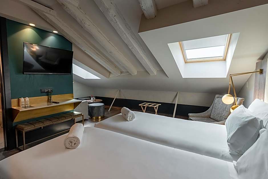 Featuring sloping ceilings this suite offers a double bed and a living room area with coffee and tea service. A pillow menu is available.