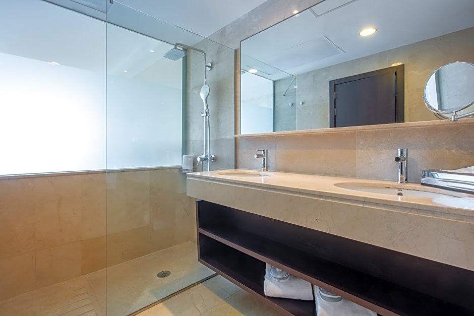 This spacious, air-conditioned room has modern décor and a balcony with a hot tub and sea views. There is satellite TV, free WiFi and a bathroom with a bathrobe and slippers.