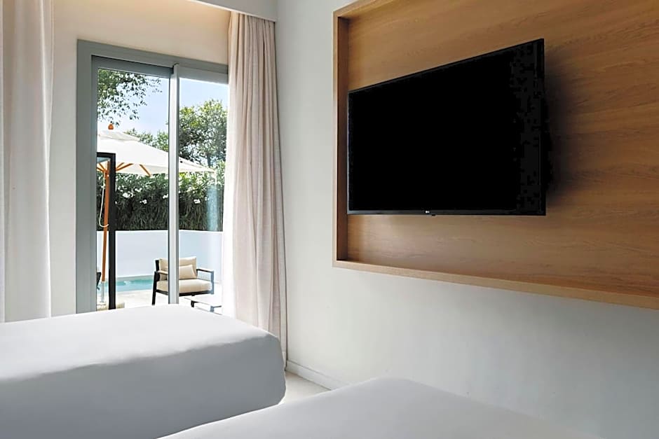 This luxurious suite features a pool with a view, a hot tub and a spa bath. This spacious suite consists of 1 living room, 1 separate bedroom and 1 bathroom with a walk-in shower and free toiletries. This air-conditioned suite features a dining area, a flat-screen TV with cable channels soundproof walls and a balcony. The unit offers 3 beds.
