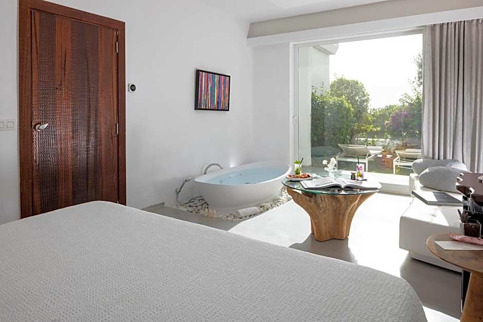 This stylish, spacious room features air conditioning, a flat-screen TV and a mini-bar. The private bathroom comes with a hairdryer and there is a hot tub in the room. It has a private terrace-garden with a small pool, loungers and great sea views.
