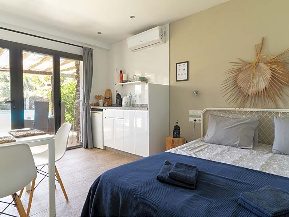 The hotel offers double rooms with private bathrooms, studios with pool views, and one-bedroom apartments. The double rooms and studios have a room size of 151 sqft, while the one-bedroom apartments are larger at 484 sqft. Smoking is not allowed in any of the rooms. All room types can accommodate 2 adults, but the one-bedroom apartment can also accommodate 2 children with its additional sofa beds. The beds in all rooms are queen size.