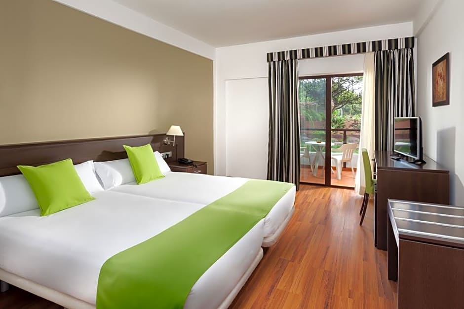 This double room with mountain and pool views features 2 single beds or 1 double bed, air conditioning, TV, WiFi and mini-bar.