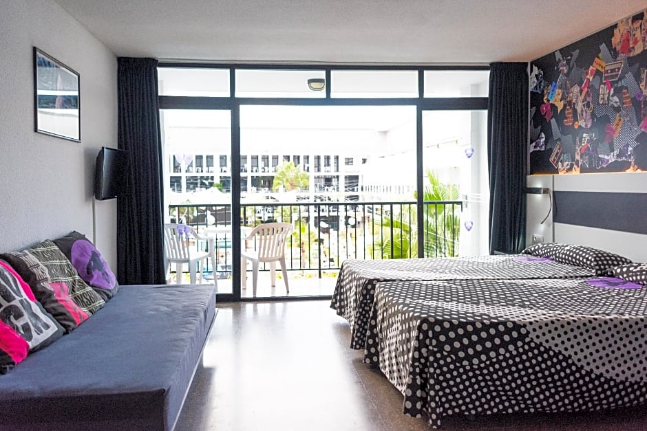 Get ready to kick back and soak up the sun at ! Nestled in the vibrant heart of Sant Antoni de Portmany, this three-star haven is just a hop, skip, and a jump (a mere ) from the buzzing city center. With prices starting at an unbeatable rate, you're not just booking a room; you're securing your very own slice of Ibiza paradise at Cervantes, 27.