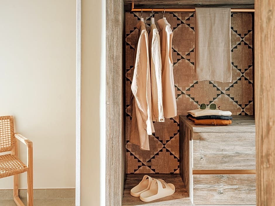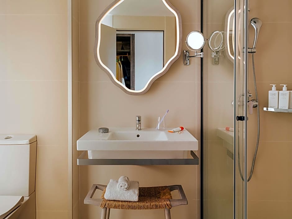 The VIP treatment is made even more epic in this room featuring a king-size bed, and a private terrace with coveted Cala Llonga sea views. Grab a specialty drink from the mini-bar and toast to the night while looking out to the beautiful Balearic Sea. A desk and vanity are there for your work or party-prepping needs. This roomy 24-square-yard space is perfect for two guests.