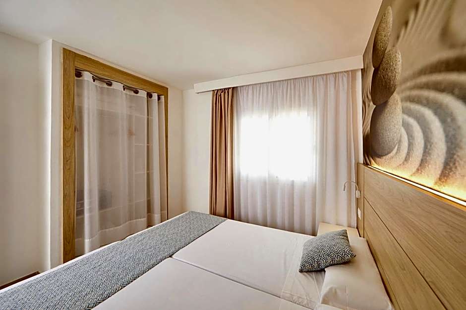 These apartments have a balcony or terrace. There is a living-dining room with sofa bed and an open-plan kitchen with microwave, electric hob and fridge. Kitchenware and appliances are included. The bedroom has twin beds and a bathroom. A safe is available for an extra cost.