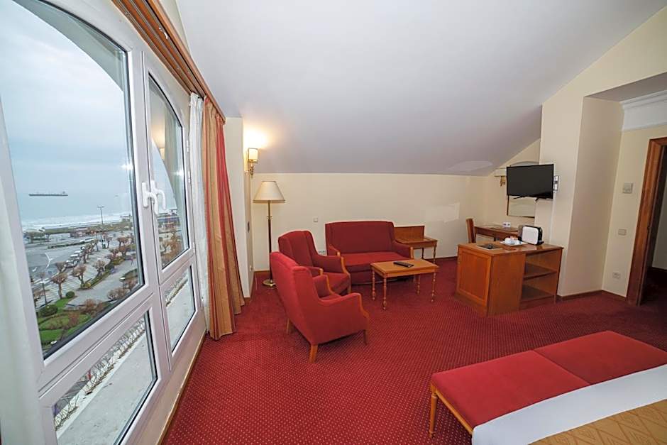 This spacious, air-conditioned suite has carpeted floors and classic-style décor. It features a flat-screen satellite TV, free Wi-Fi and a mini-bar. The private bathroom includes a hairdryer, bathrobe, and free toiletries. This suite offers sea views.
