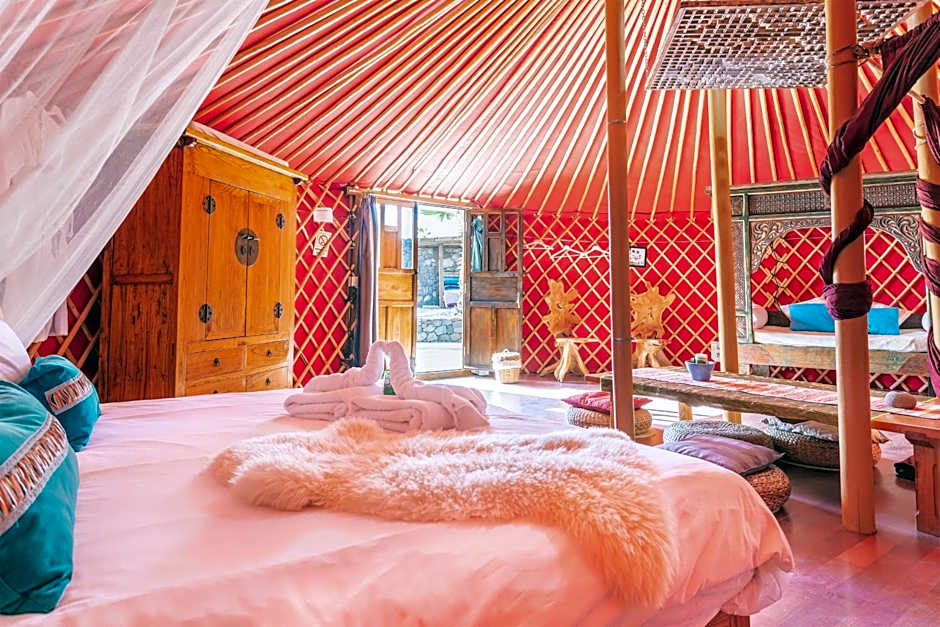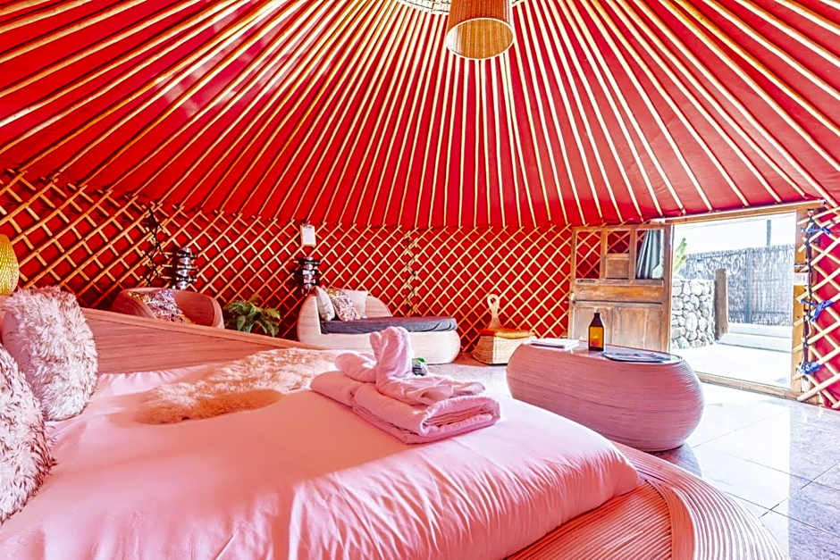 This Eco Chico Yurt features, sea-views a seating area, a fully equipped kitchen, shaded day bed, Bluetooth Speaker and outdoor dining area.