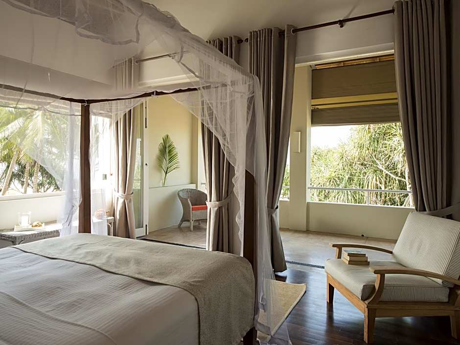 The suite has a large balcony with views of the beach, pool, gardens and Indian Ocean. These suites are on the first floor.