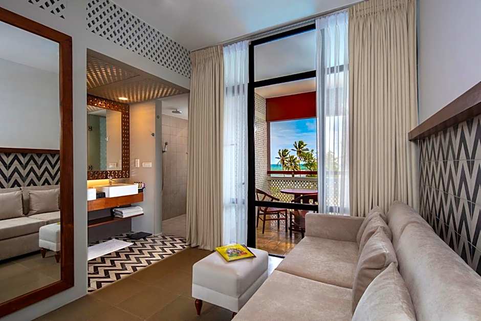 is a 5-star resort in Beruwala, Sri Lanka, just from the city center on a beachfront site. The property invites with a private pool and spa/Wellness packages, plus an on-site restaurant and a kids' pool, with snorkeling available for an extra charge.