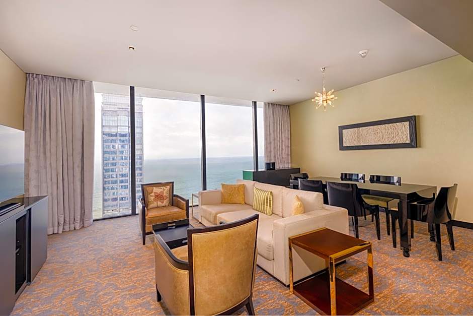 This suite offers a pool with a view. This spacious suite consists of 1 living room, 1 separate bedroom and 1 bathroom with a walk-in shower and free toiletries. The suite's kitchenette is available for cooking and storing food. The air-conditioned suite provides a flat-screen TV with cable channels, a mini-bar, a tea and coffee maker, executive lounge access as well as sea views. The unit offers 2 beds.