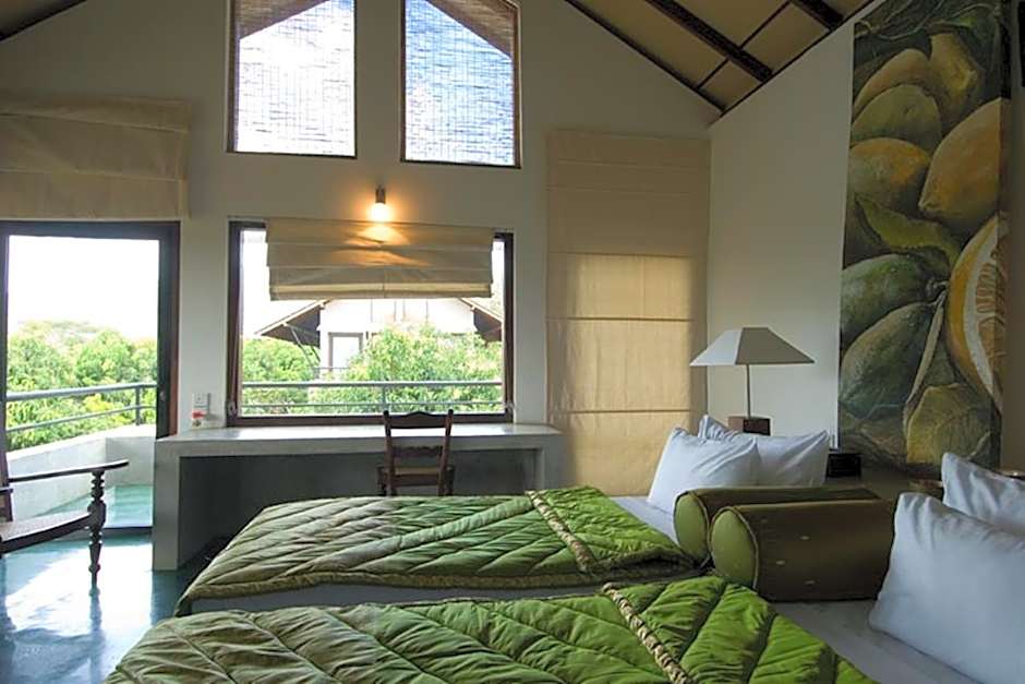 Sigiriana Resort by Thilanka offers two types of rooms. The Deluxe Double or Twin Room with Balcony is a 474 sqft room that accommodates 2 adults and 1 child. This room has a king size bed and two twin beds. Smoking is not allowed in this room. The Superior Villa is a larger option, with a size of 592 sqft. It also accommodates 2 adults and 1 child, with a king size bed. Smoking is not allowed in this villa.