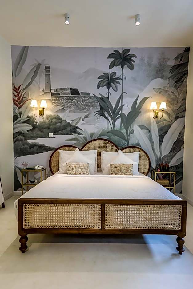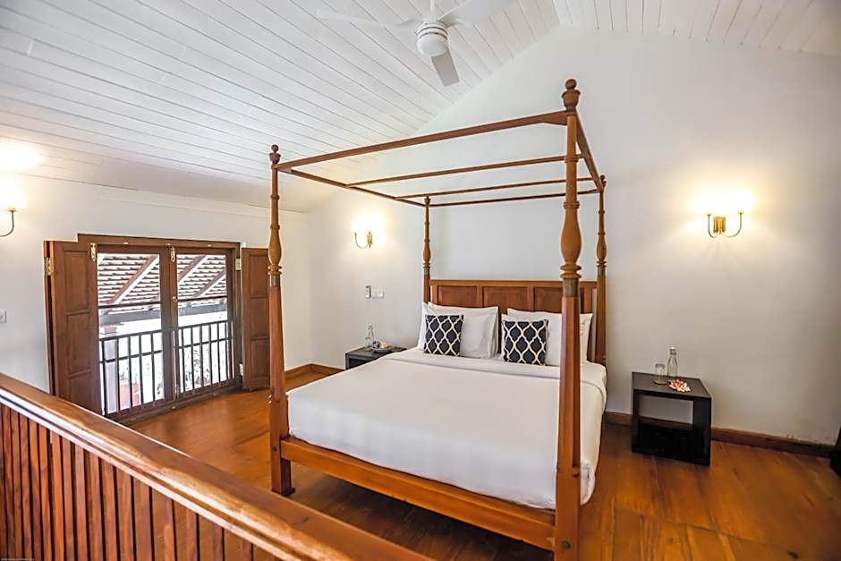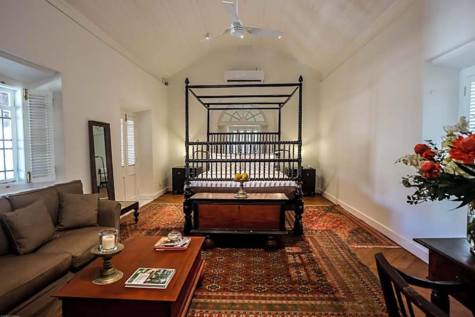 This suite features a tile/marble floor, bathrobe and air conditioning. Includes Dutch shuttered windows, antique cabinets and decadent four poster bed.