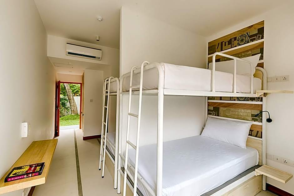 Hotel J, Unawatuna offers a variety of rooms including 4-Bed Mixed Dormitory Room, Family Room, 4-Bed Female Dormitory Room, Standard Twin Room, 6-Bed Mixed Dormitory Room, and Standard Double Room. The rooms range in size from 237 sqft to 506 sqft. Smoking is not allowed in any of the rooms. Bed sizes include bunk beds, twin beds, and king size beds. The occupancy varies from 1 adult to 4 adults and 1 child.
