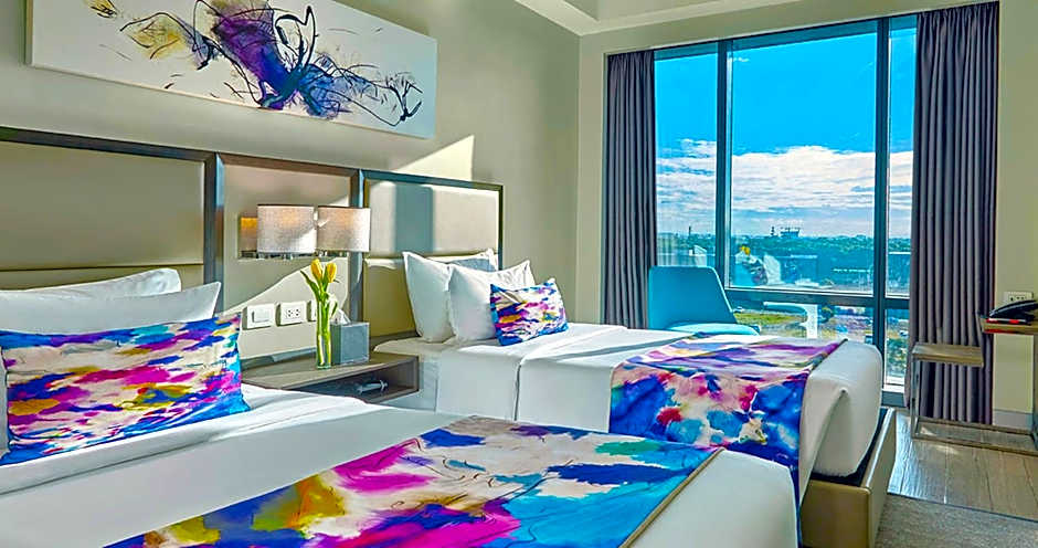 är ett fyrstjärnigt hotell i Manila. Beläget på Andrews Avenue, Newport City, ligger det ungefär från stadens centrum. Med 5 144 recensioner erbjuder fastigheten priser från per natt.