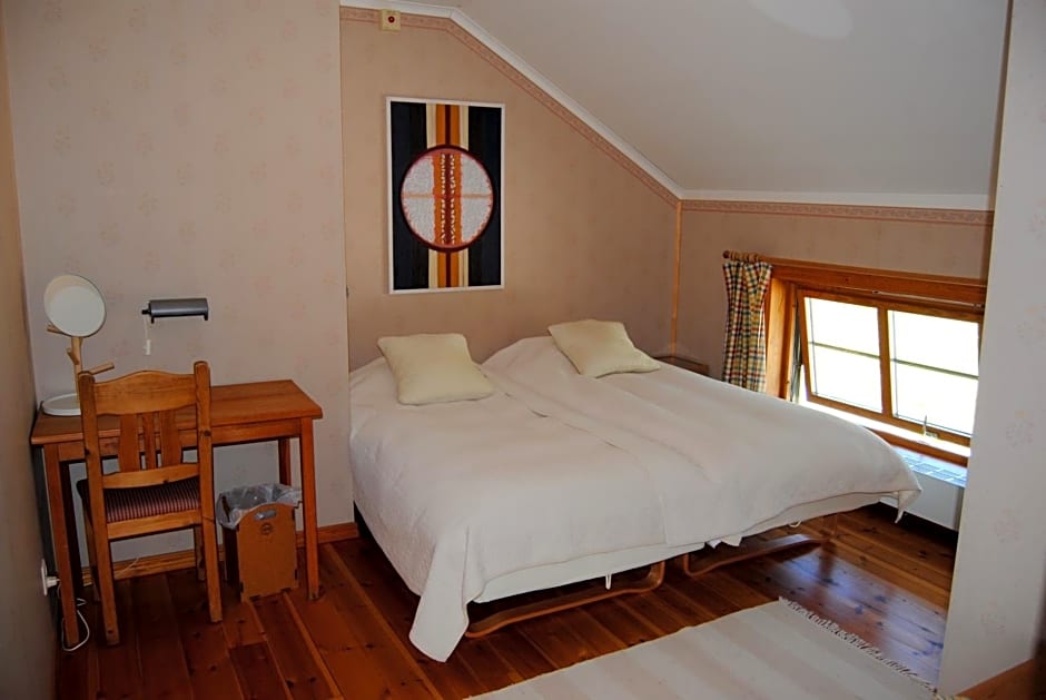 Simple, bright room with wooden floors, organic bed linen, private bathroom and nature views.