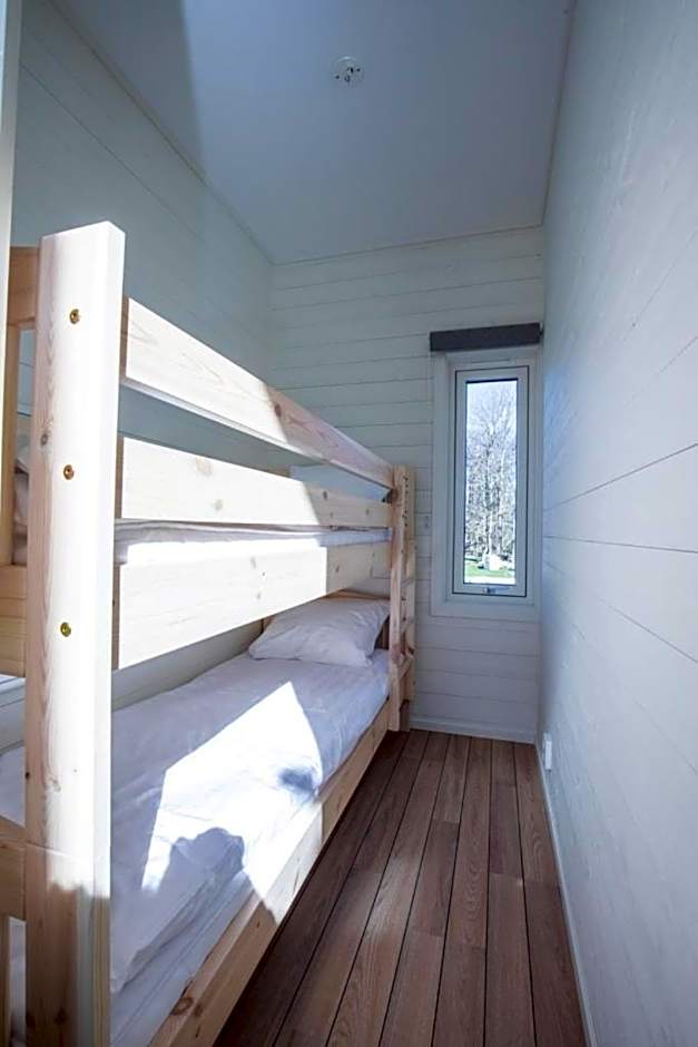 Rooms are 33 square yards. The bunk bed is not suitable for adults.