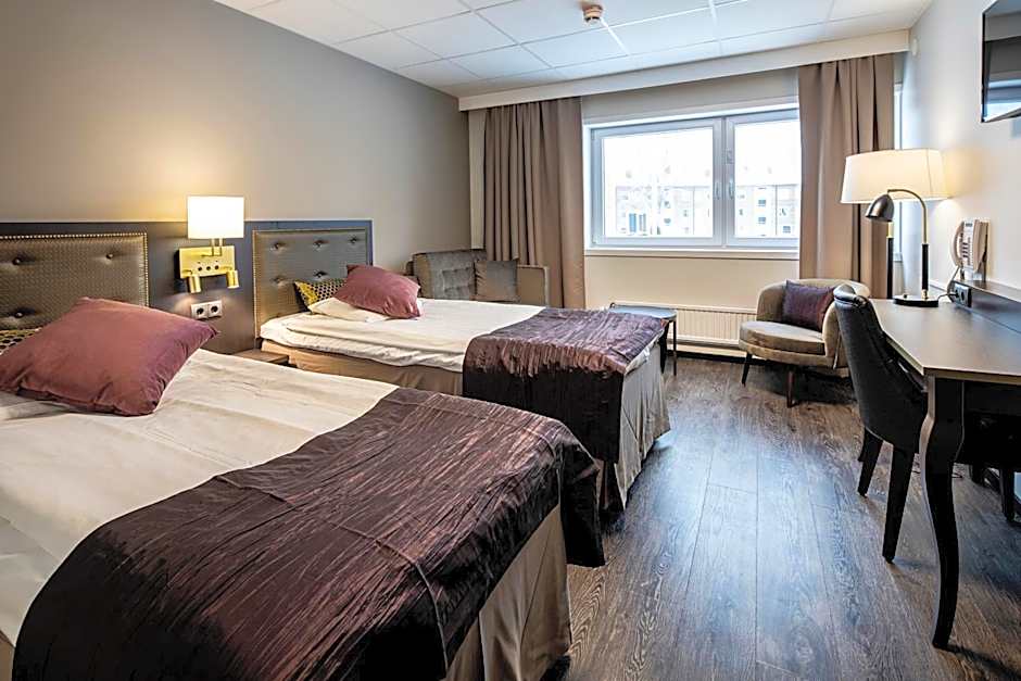 With 603 reviews, First Hotel Royal is a traveler favorite, offering top-notch amenities such as an indoor swimming pool, sauna, fitness center, and a lovely garden and terrace. The hotel also boasts convenient features like free WiFi, non-smoking rooms, a bar, restaurant, and kids' meals for the little ones. Additionally, pet-friendly accommodations are available with extra charges, ensuring every member of the family can enjoy a comfortable stay.