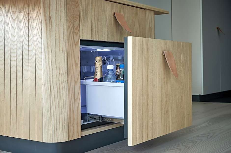 Step into our spacious Deluxe Rooms, starting at 28 square yards / 301 square feet. Equipped with an accommodating king-sized bed skillfully crafted by Hilding, the renowned sleep specialists. When necessary, this bed can be transformed into two twin beds. Complete with soft pillows and 100% organic cotton bed linen, a serene sleeping experience awaits. The Nordics are reflected in every inch of our rooms, which of course extends to our bathrooms. Taking inspiration from Finnish sauna culture, our soft towels rest on a wooden bench. You’ll also find a bathtub, walk-in rain shower, bath and body products from Grown Alchemist, and quality amenities.