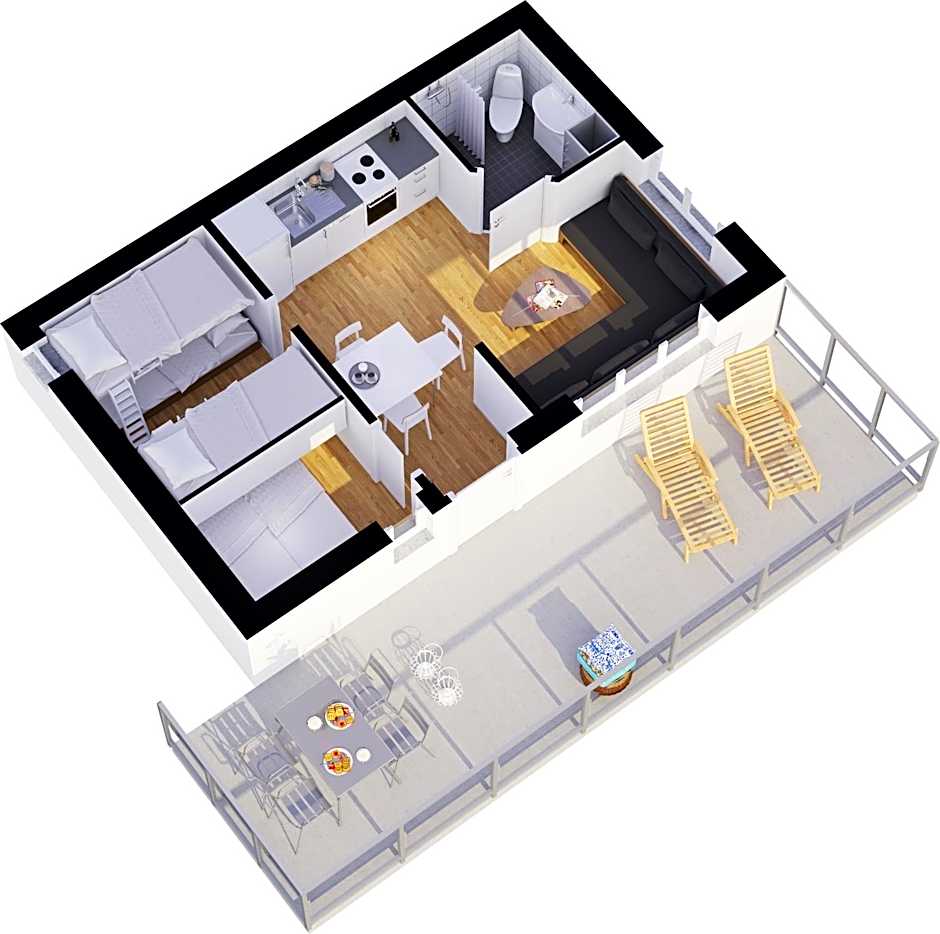 Holiday cottages beautifully located along the mountain wall with fully equipped kitchen, bathroom and living room and 2 bedrooms.