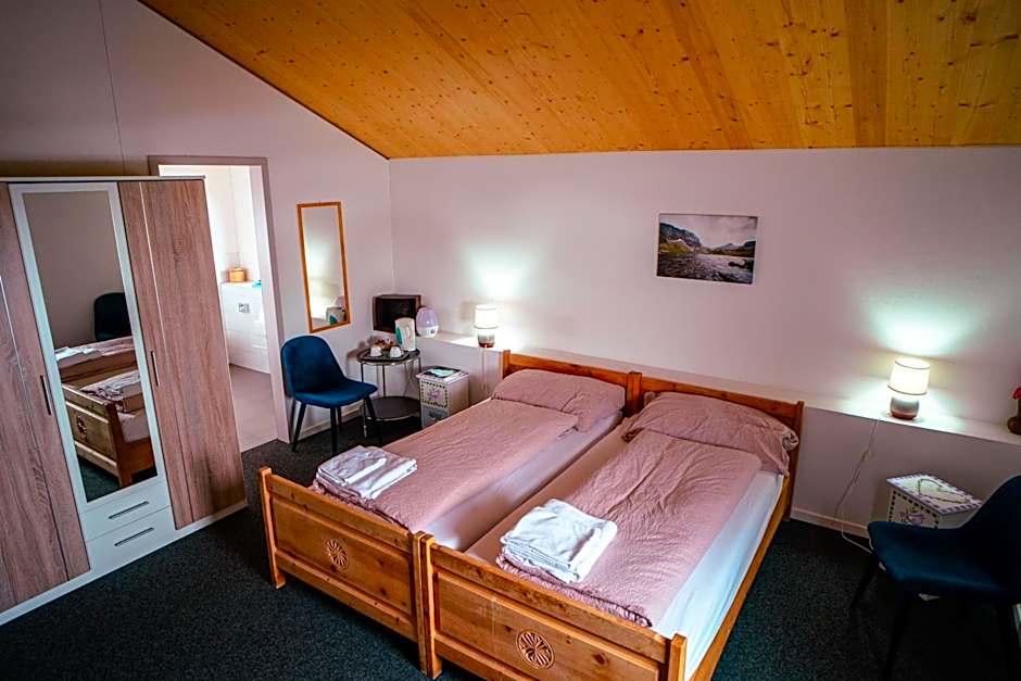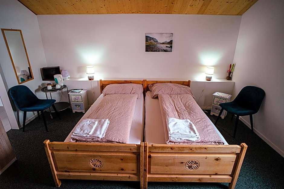 The spacious triple room features a seating area, an electric kettle, as well as a shared bathroom boasting slippers. The triple room provides a carpeted floor, heating and mountain views. The unit has 3 beds.