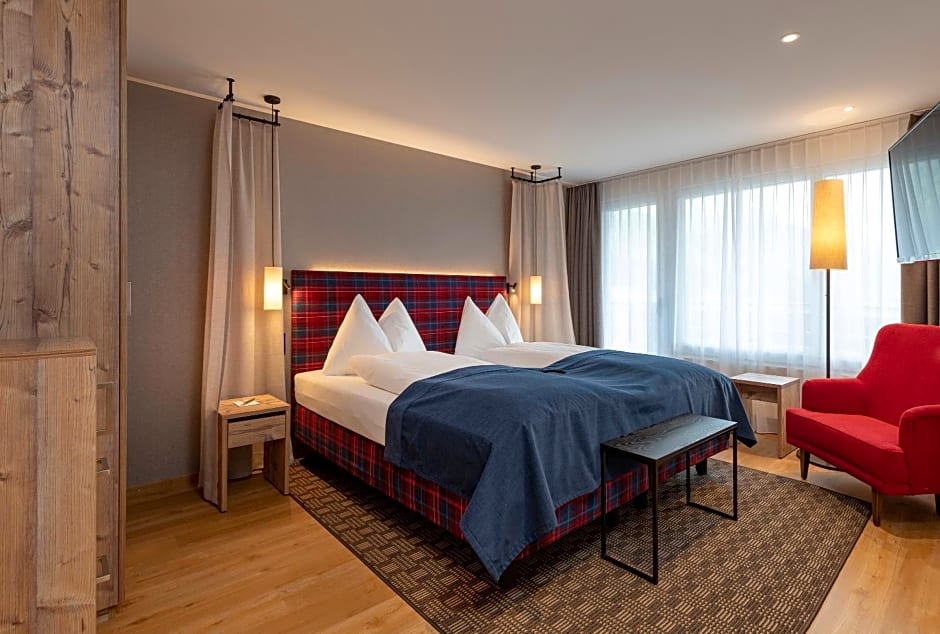 In addition to these amenities, guests can also enjoy live music performances in the hotel. For dining options, there are two restaurants on site. Jakobshorn offers a modern ambiance and serves local and international cuisine. Buurestube, on the other hand, offers a mix of traditional and modern ambiance and serves local and international dishes.