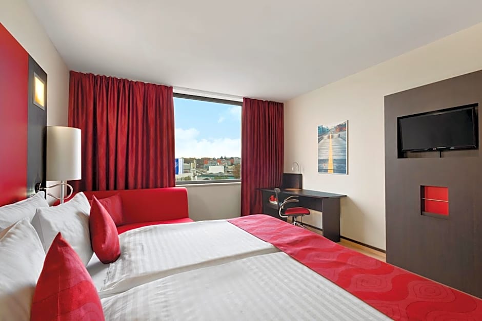The Ramada Encore by Wyndham Geneva offers a variety of room types. These include King Rooms with Sofa Beds and Standard Twin Rooms with Sofa Beds, both of which can accommodate 2 adults and 1 child. There are also Twin Rooms and Deluxe Business King Rooms available, all of which can accommodate 2 adults and 1 child. Finally, the hotel also offers Queen Rooms, which can accommodate 2 adults and 1 child. All rooms are non-smoking.