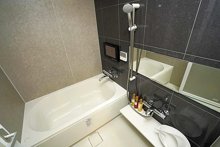 This room features a flat-screen TV, a radio, and a bathroom with a bathtub or a shower and a hairdryer.
