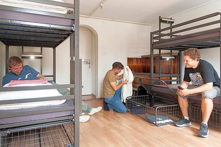 Accommodations span a spectrum from dormitory-style beds to private rooms, with options like Dormitory, 4 Twin; Dormitory, 6 Bed; Dormitory, 8 Bed; Dormitory, 10 Bed, and private choices such as Room - 1 Double, Room - 4 Twin (Shared Bathroom), Room - 4 Bed, and Standard Room. The setup combines social dorms with private spaces for flexible stays.