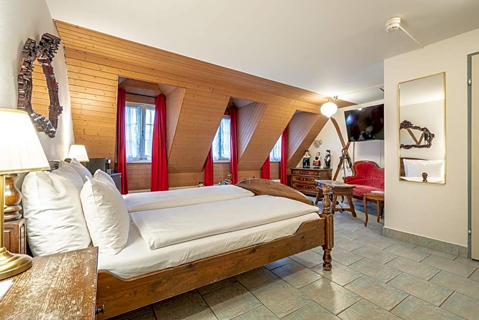 -four-poster bed -private whirlpool -balcony with view over Luzern -bathroom with shower or bath, WC and hairdryer -mini-bar, a fan (no air conditioning), safe, TV / radio and coffee maker Delizio -No Elevator from the Groundfloor -Baby cots are unfortunately not possible -Pets are not allowed