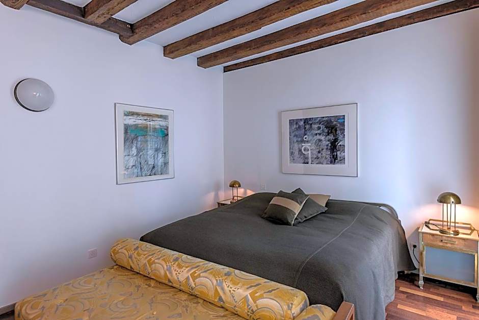 This double room includes a flat-screen TV with cable channels, a private bathroom as well as a terrace with a view over the lake or over the city and the church. The unit offers 1 bed. The room is located on the 6th floor, and the elevator can only be used to reach the 5th floor. The 6th floor is only accessible by a spiral staircase. In one of the two rooms the bathroom is accessible by a small staircase.
