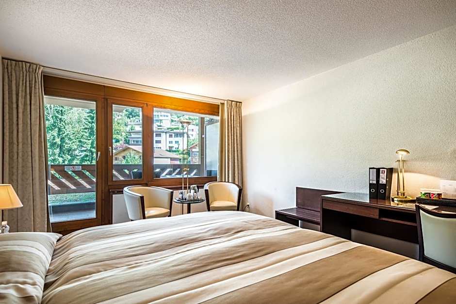 This north-facing room offers balcony, a mini-bar, a TV, a safety deposit box, radio, telephone and a bathroom with bath tub or shower and hairdryer.