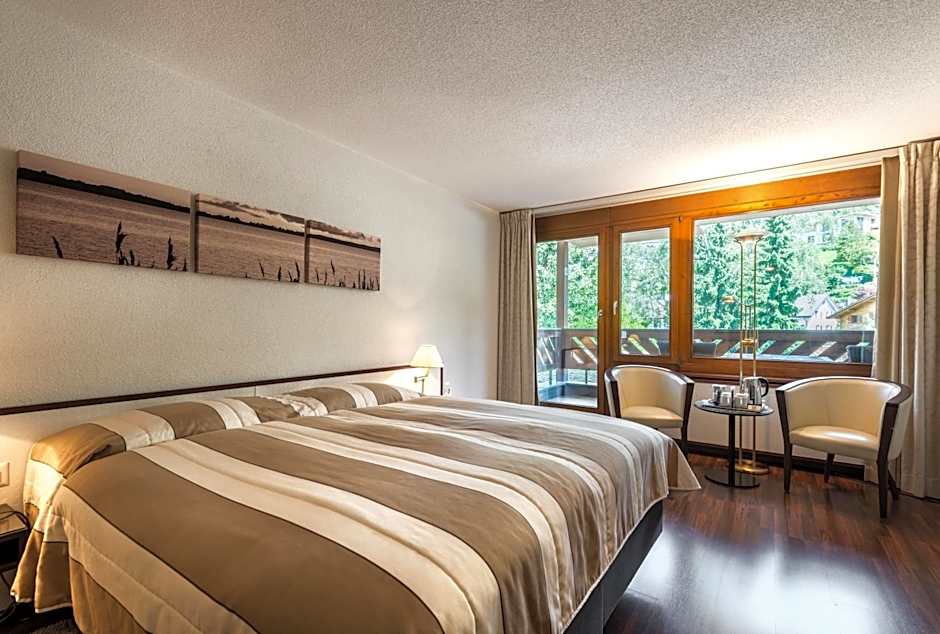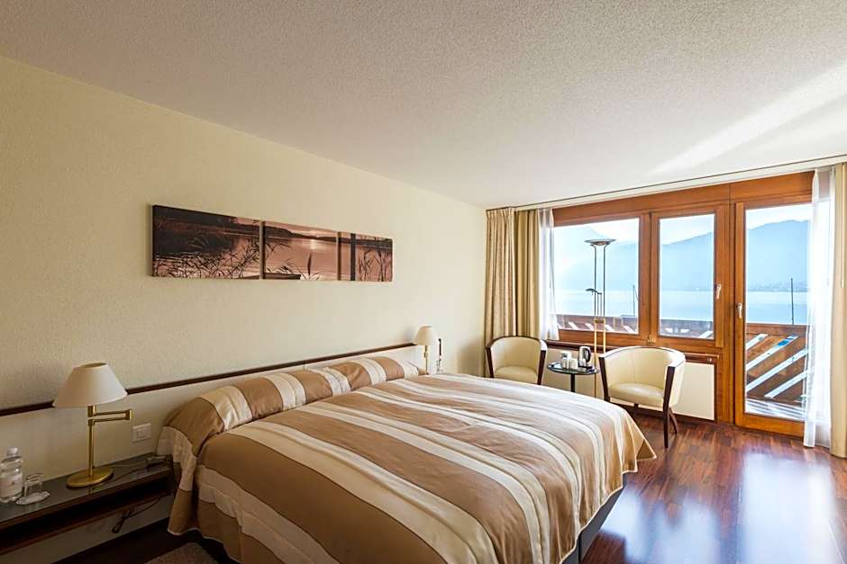 This lakeside room offers a balcony, a mini-bar, a TV, a safety deposit box, radio, telephone and a bathroom with bath tub or shower and hairdryer.