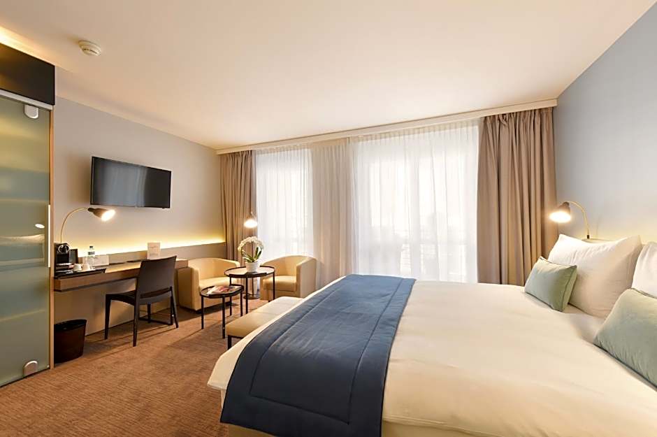Two on-site dining options keep meals effortless between lakeside strolls. Brasserie la Coupole 1912 sets a mood that can be family-friendly, traditional, or romantic, offering seafood, steakhouse, and international fare. Pavillon provides another option with steakhouse and international dishes for a relaxed, satisfying dinner. Afterward, the on-site Bar invites a low-key moment to unwind and take in Vevey’s charm.