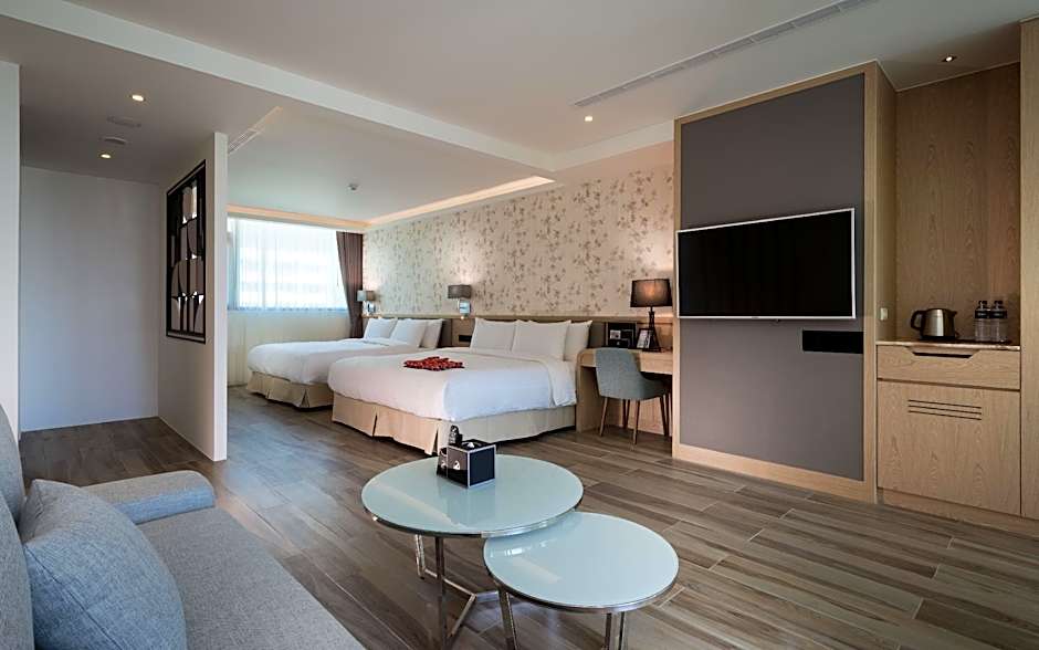 The spacious family room provides air conditioning, soundproof walls, as well as a private bathroom featuring a walk-in shower and a bath. This family room features a mini-bar, a seating area, flat-screen TV, as well as chocolate for guests. The unit offers 2 beds.