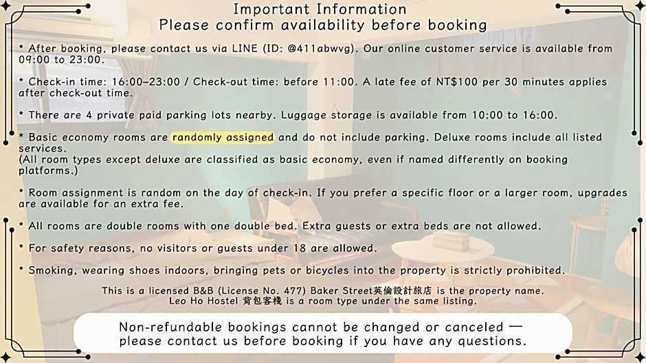 When it comes to payment, Leo Ho Hostel accepts multiple convenient options for your stay. You can settle your bill with major credit cards such as JCB, Visa, and Mastercard, providing you with flexibility and ease during check-out. Ditch the worry of carrying cash and enjoy a hassle-free payment process when you choose to stay at Leo Ho Hostel in Tainan.