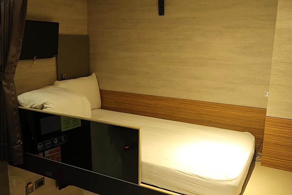 This air-conditioned dormitory provides private curtain, a safety deposit box and private lamp for each guest. Shared bathroom is offered. The room can accommodate 8 to 16 guests. The price is for 1 guest only.