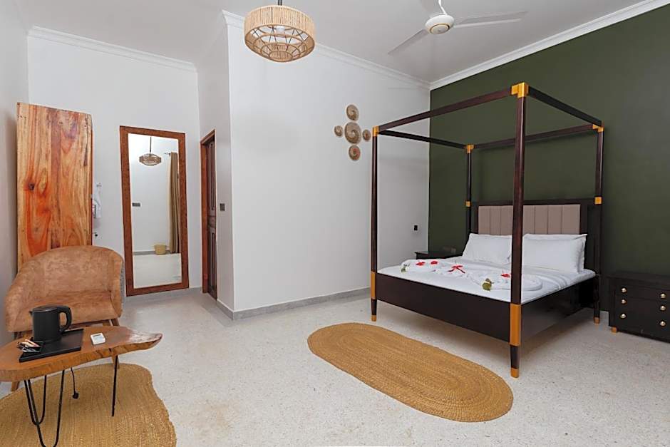 Leparadis Zanzibar Boutique Hotel invites travelers to unwind in a breezy beachy atmosphere along Jambiani’s turquoise shores. A garden space with beach chairs sets the stage for laid-back moments, while occasional live music adds a splash of local flair. The outdoor pool features a shallow end, welcoming guests of all ages to cool off in the tropical glow.