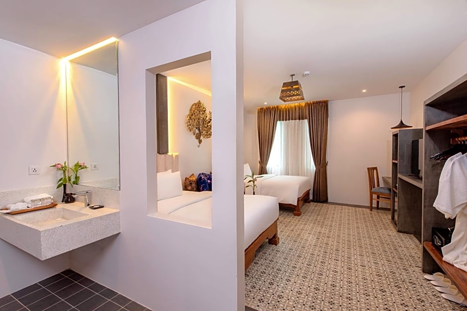 ยินดีต้อนรับสู่ [ชื่อโรงแรม] โรงแรมระดับ 4 ดาวที่งดงาม ตั้งอยู่ใจกลางเมืองเสียมราฐ ประเทศกัมพูชา โรงแรมแห่งนี้ตั้งอยู่ห่างจากใจกลางเมืองเพียง 1.4 กิโลเมตร ทำให้เป็นทำเลที่สะดวกสำหรับนักเดินทางที่จะสำรวจทุกสิ่งที่เสียมราฐมีให้ ด้วยรีวิวมากกว่า [จำนวนรีวิว] โรงแรมแห่งนี้ได้รับคำชื่นชมในด้านการบริการและสิ่งอำนวยความสะดวกที่ยอดเยี่ยม