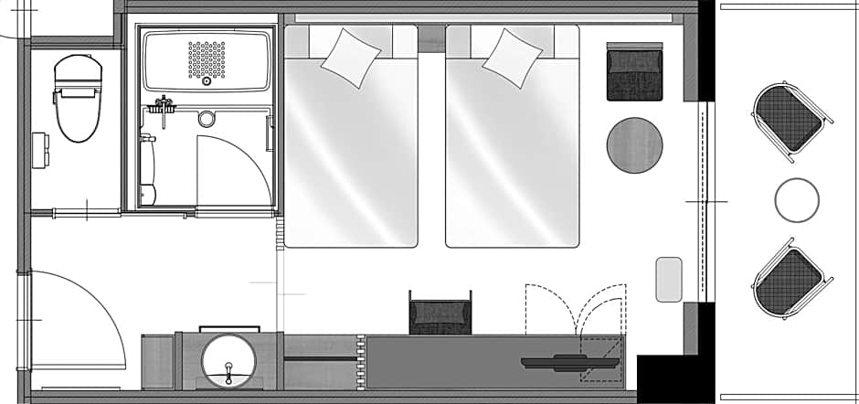 ห้อง, 2 เตียงแฝด, ฟูกญี่ปุ่น, ระเบียง