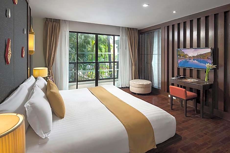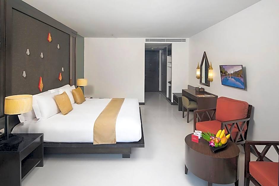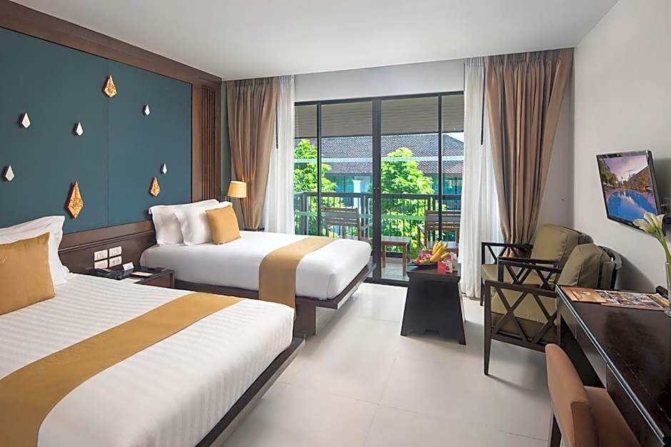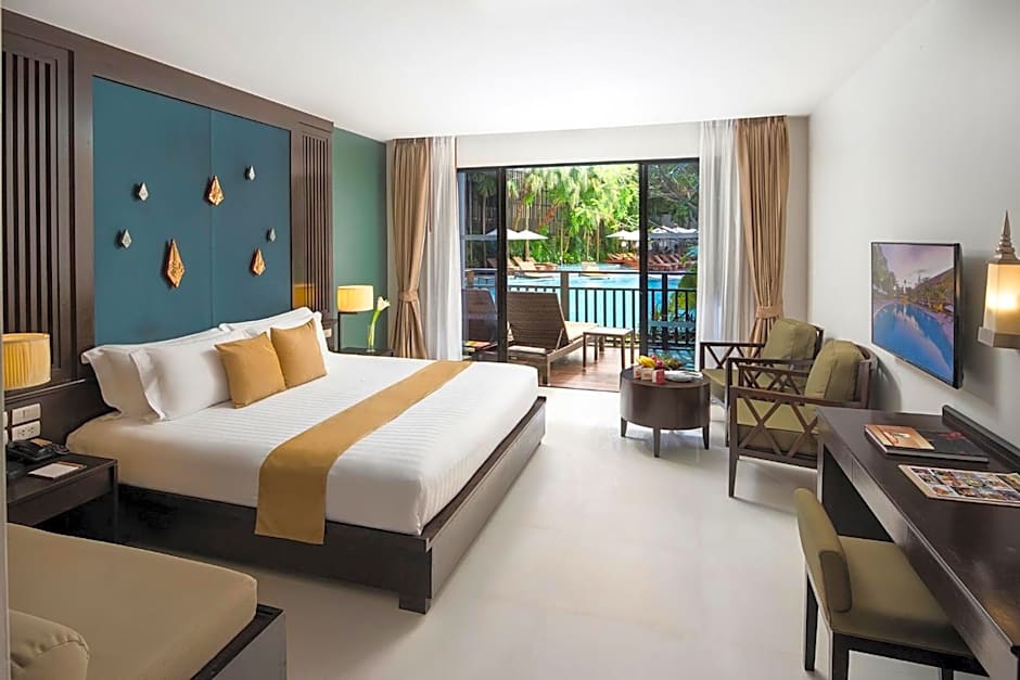 The Centara Anda Dhevi Resort and Spa - SHA Plus offers a range of room types including Double Rooms with Pool View, Deluxe King Rooms, Queen Rooms with Pool View, Deluxe Twin Rooms, and King Rooms with Pool View. The rooms are non-smoking and can accommodate either 2 adults and 2 children or 3 adults and 1 child. The bed sizes vary between double beds and king-size beds.