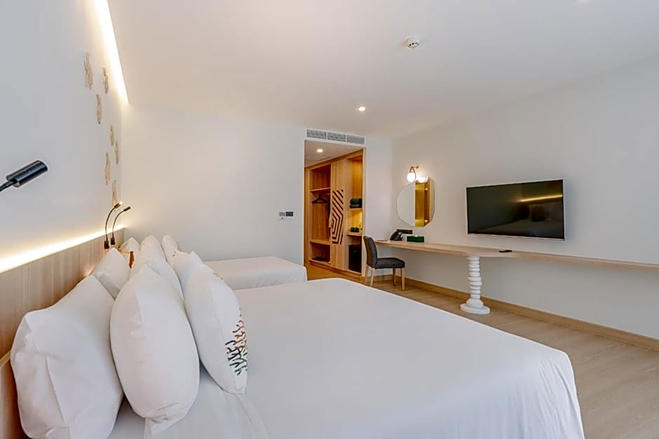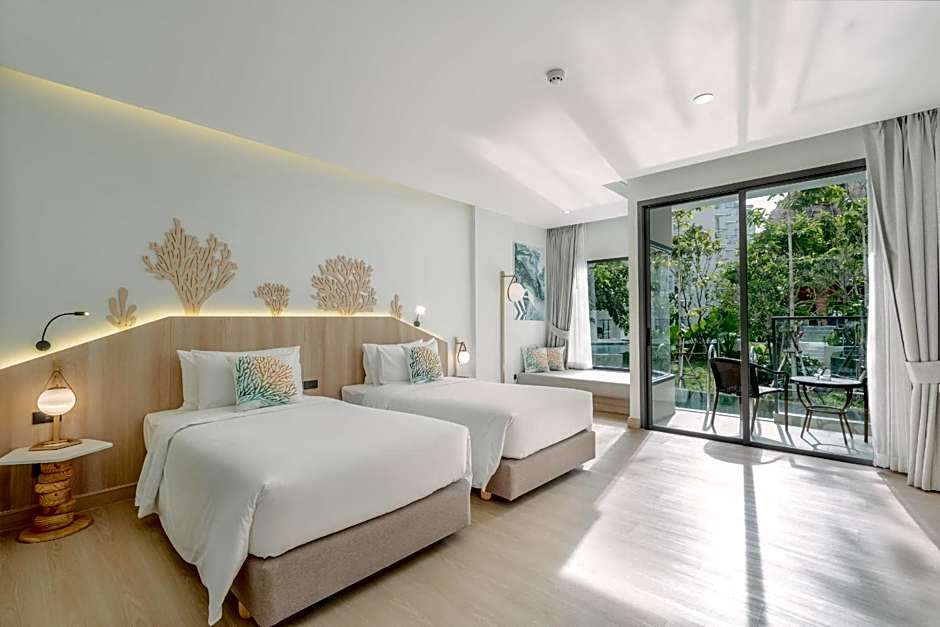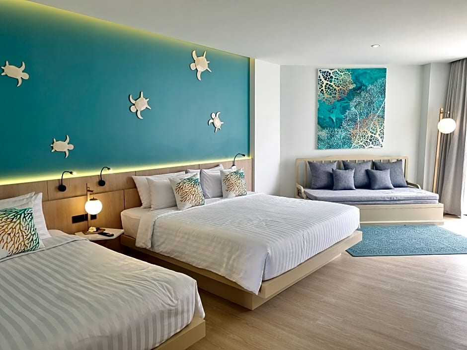 Nestled along the sands of Karon Beach, this 5-star retreat blends sun, sea, and sparkling moments. Two outdoor pools cater to adults only for a serene sunbath, while a free water park and a waterslide add splashy thrills for younger guests. The free Kids’ club keeps little explorers entertained, and there’s live music performances to soundtrack warm evenings. Beach umbrellas and chairs with a view invite lazy afternoons by the shore, perfect for soaking up those island vibes.
