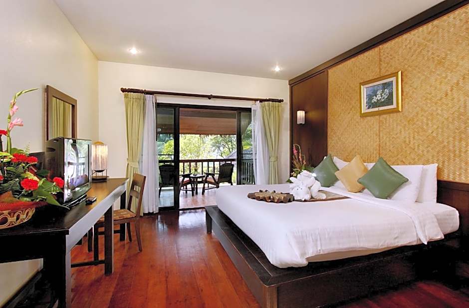 At Khaolak Paradise Resort, guests can choose from Villa with Garden View rooms, accommodating 2 adults in a Queen size bed with a 958 sqft area, and Deluxe Double or Twin rooms, accommodating 2 adults in a combination of 2 Twin beds and 1 Double bed within a 517 sqft space. Smoking is not allowed in both room types.