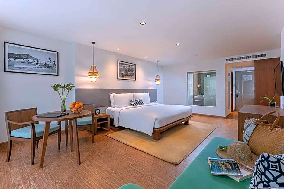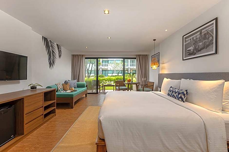 The Outrigger Khao Lak Beach Resort offers a variety of rooms including Deluxe Garden Balcony rooms with either a King bed or Twin beds, Family Garden Terrace rooms with 1 King bed and 1 bunk bed or a Queen bed, Garden Suites with a King bed, Garden Villas with a King bed, and Pool Villas with a Double bed. All rooms are non-smoking and have an occupancy of either 2 adults and 1 child or 3 adults and 3 children. The room sizes range from 431 sqft to 829 sqft.