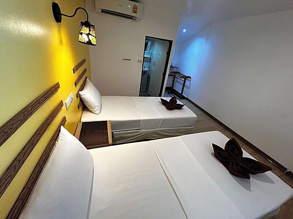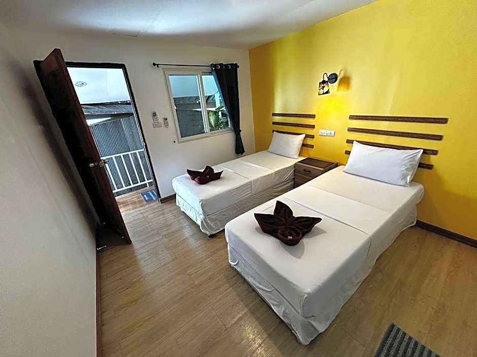 Located in a wooden building, this air-conditioned standard twin room comes with basic facilities. It has a seating area with a low ceiling. Hot shower facilities are included in an private bathroom.